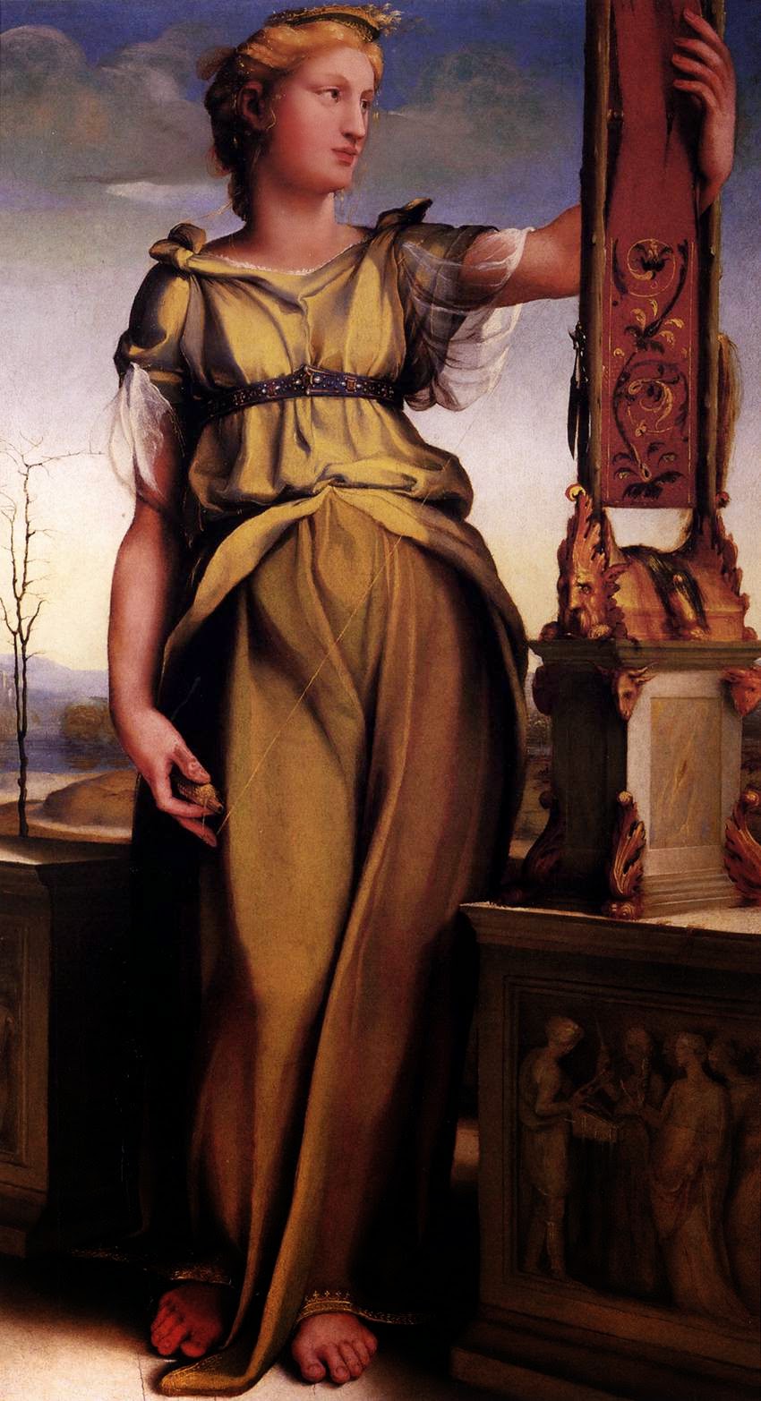 Όταν άρχισε τη διήγηση στην Πηνελόπη, εκείνη δούλευε αμίλητη το χρυσό σχέδιο ενός κεντήματος και κοίταζε αφηρημένη απ’ το παράθυρο.
